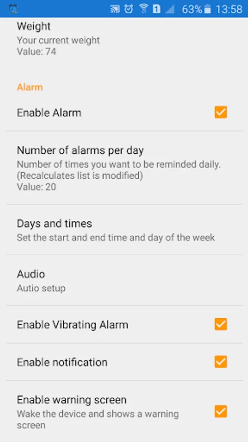 - Mode reminders varied: With sound, vibration, notification, "extra" reminder, etc.;