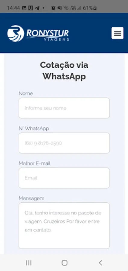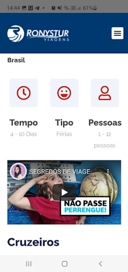 App of the Ronystur Travel Agency. Here you will find several travel packages for your vacation.