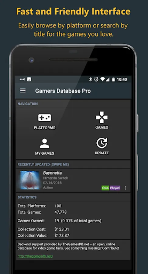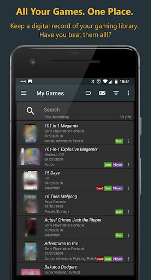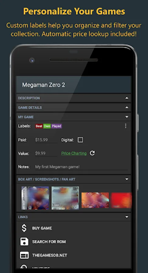 Use the app to keep a digital record of all the video games you own and have played throughout the years.