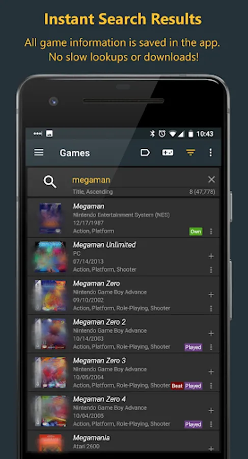 Help your fellow gamers and the gaming community by adding and updating game information at the website. Watch as your contribution shows up in the app!