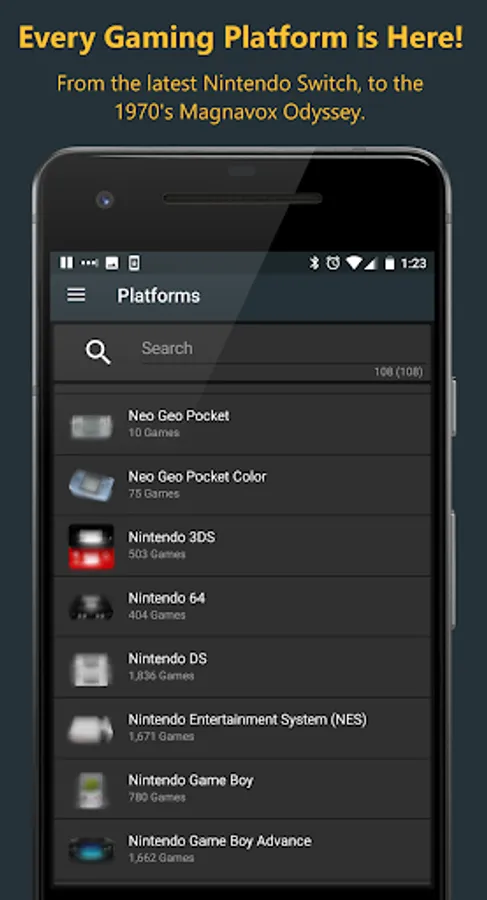 Every gaming console / platform is here! Each platform includes complete details about the system, pictures, links for emulators, and more. Quickly browse through a list of all the games ever release for each platform!