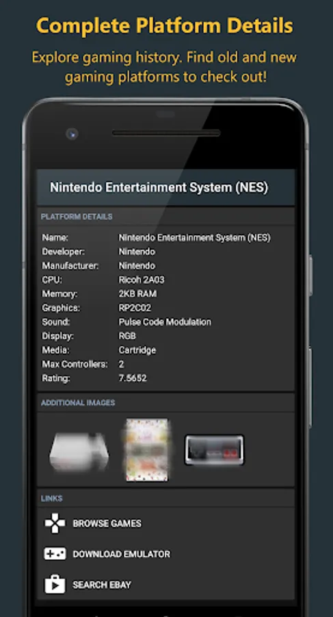 The apps database is synchronized in real-time with TheGamesDB.net (http://thegamesdb.net) - this incredible resource of gaming information is updated every day by video game fans just like you!