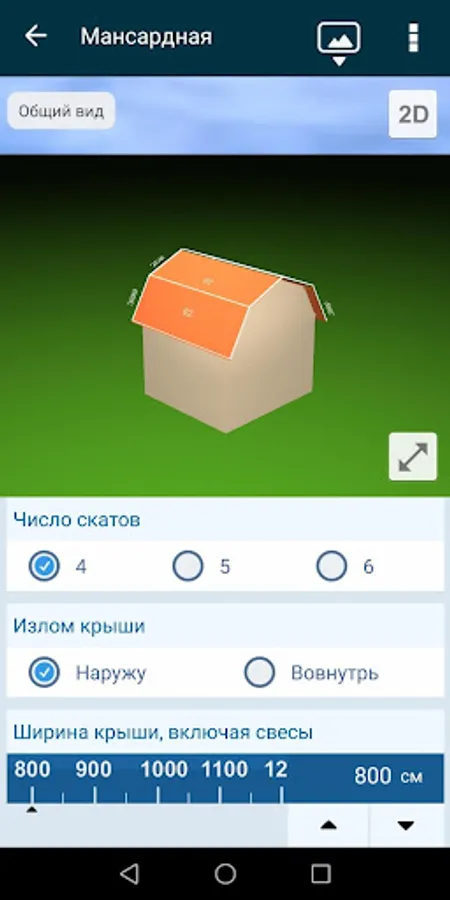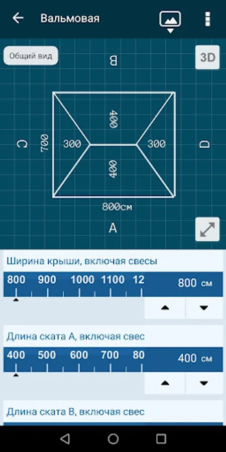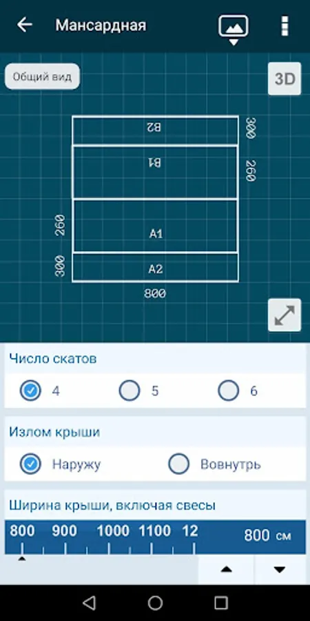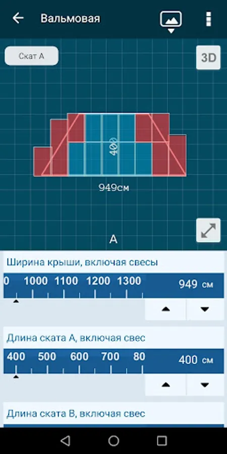 With the application, you can easily calculate the roof of metal, corrugated. The calculation of various types of roofs is available, for example, the calculation of a four-sided roof, the calculation of a double-sided roof with a mansard. The application works not only as a construction roof calculator, providing the correct calculation of the roof, calculating the roof area, but also builds a 3D model of 3D. You are available to unload drawings and sketches, as well as estimates of roofing materials.