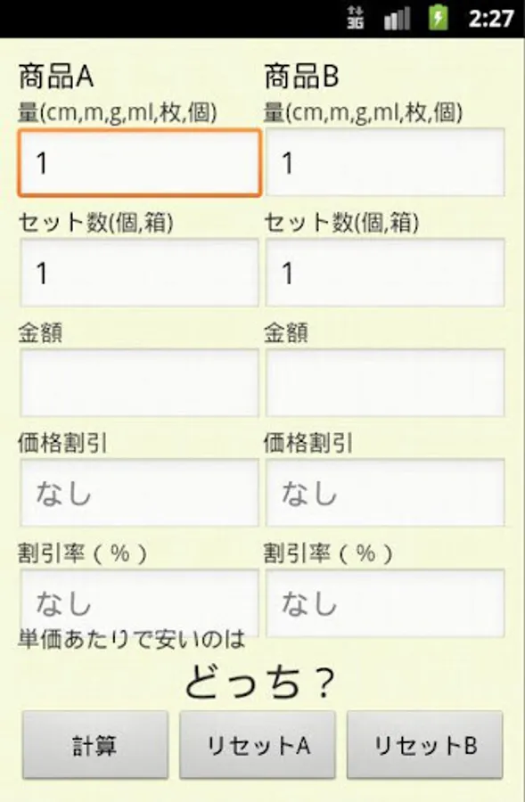 2、価格比較をしたい商品Aと商品Bにそれぞれ商品情報を入力します。
