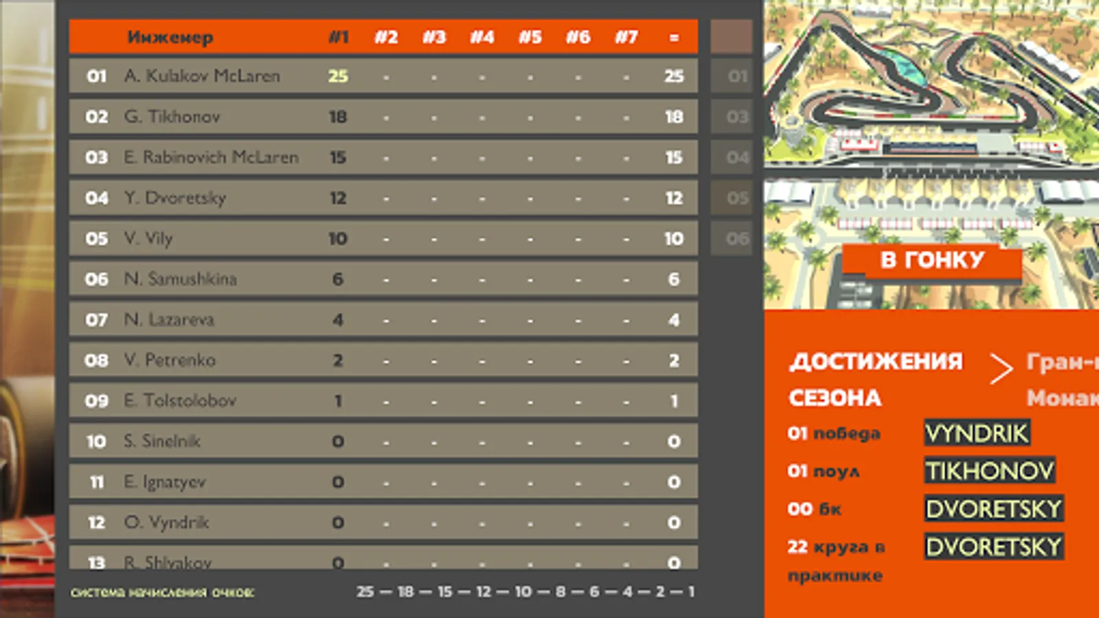 Simulator racing engineer, a unique game from fans to fans. No management, contracts, no purchase of components for the car and other areas of the manager.