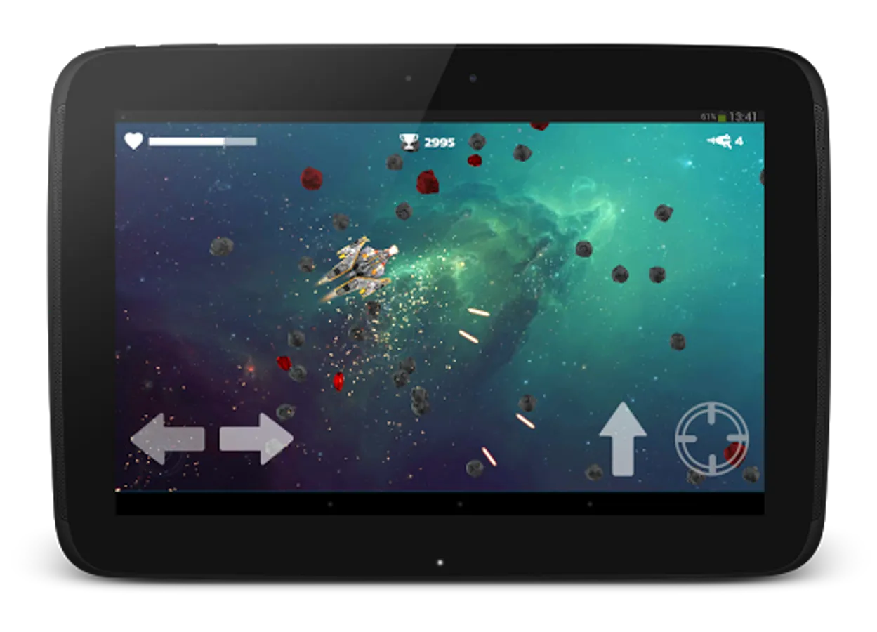 And remember, You have a cool spaceship but it is not immortal and it may will break! So collect red crystals for healing and avoid collisions!
