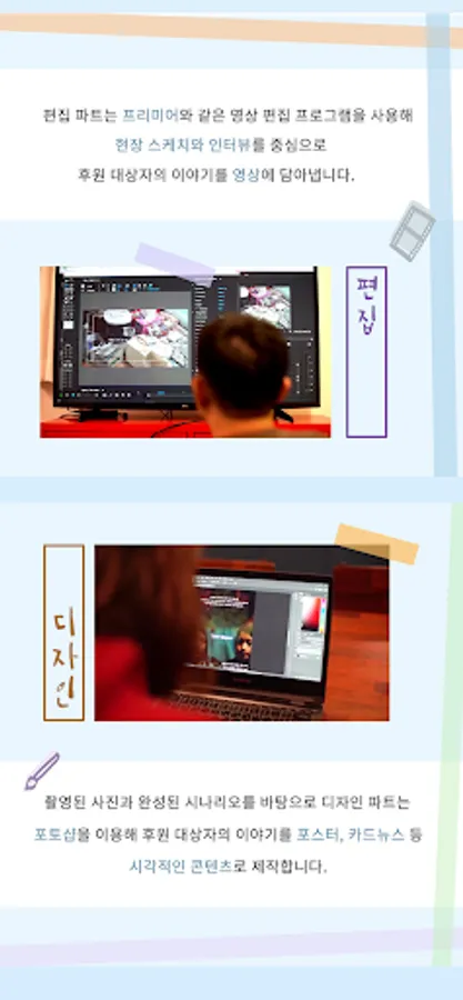 -Writing a story, producing card news and sponsored posters, taking videos and photos,