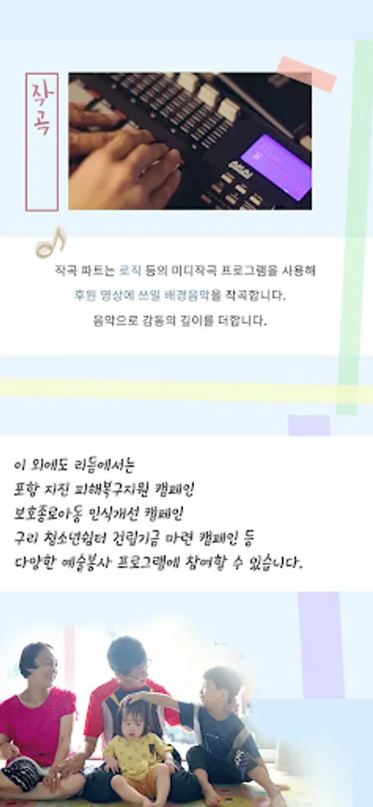 Scenario writing, card news design, video shooting techniques, Premiere Pro lectures, how to use Cubase, etc.