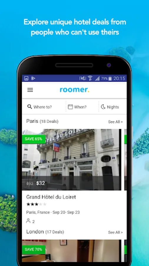 If you are stuck with a nonrefundable hotel reservation that you cannot use, you can offer your room on Roomer and avoid losing your money.