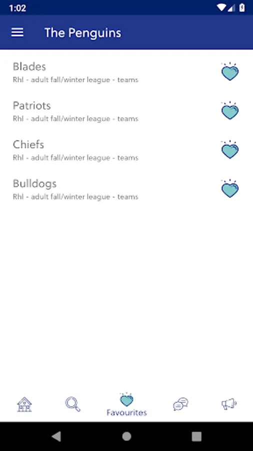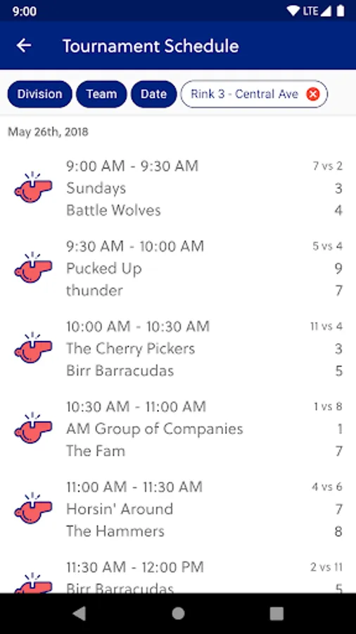 Favourite teams. When viewing teams attending an event, select the heart icon to favourite a team then easily view their schedule and scores later from the home screen.