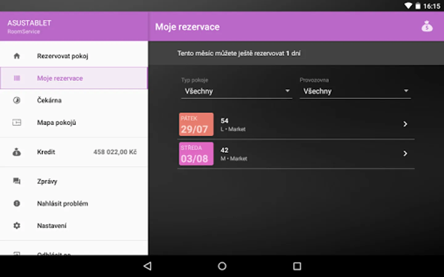 Roomservice application is designed for people who want to book a room in their spare time. The main aim of their stay is to spend delightful and entertaining time in our rooms with the best services. Through the app, you can choose your preferred room and book it in advance of the desired date which you plan to spend in Prague.