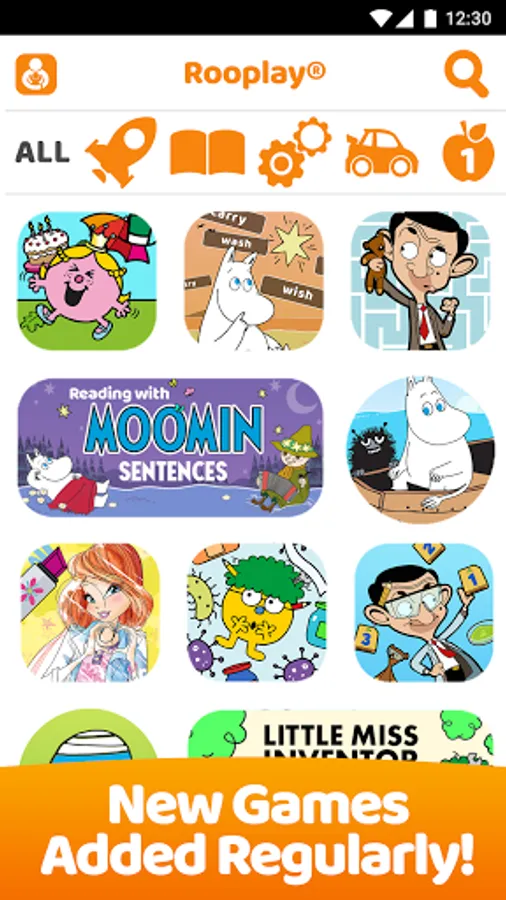 Rooplay offers games in a variety of categories: learning, family, sports, brain teasers and more!