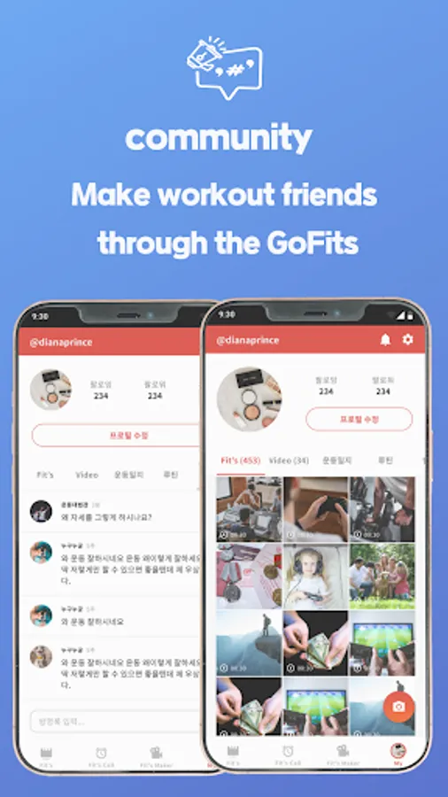GoFits is a fitness content service that provides motivation to focus more on workout by creating effective and regular routines such as fitness short form, convenient exercise routine management, automatic workout diary writing, various workout plan alarms, and video production.