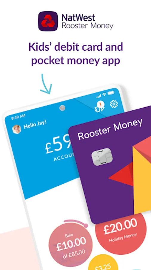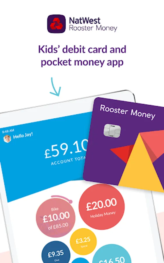 Welcome to NatWest Rooster Money–a pocket money manager, piggy bank, reward chart, savings tracker & chores app–made to help families teach kids about money & savings goals. We also have a prepaid Visa debit card for kids that lets parents raise their youngsters to be money-wise.