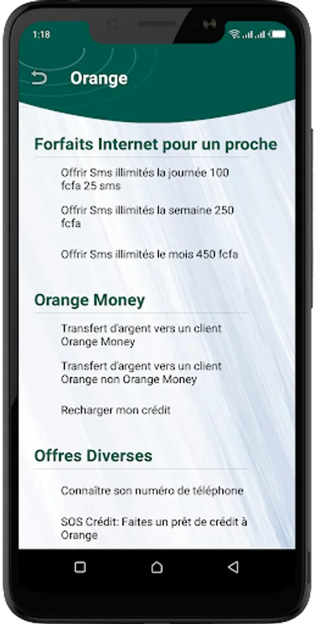 - A grouping platform for the most used Short Numbers (USSD Codes); such as credit inquiries, internet packages, all-network call packages (MTN, ORANGE, NEXTTEL).