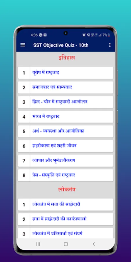 In this App you get Bihar Board vvi Objective of Class 10 of subject SST.
