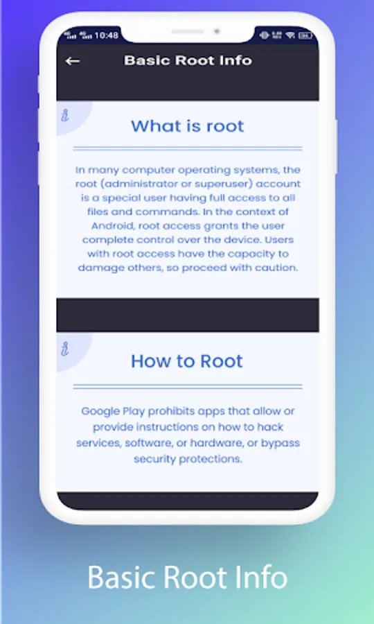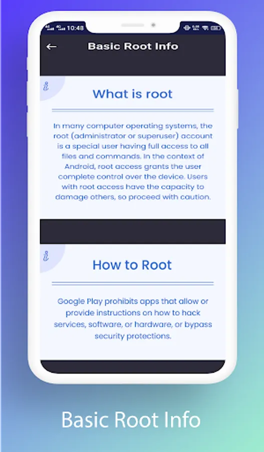 This Root checker app Provide info about your phone if you mobile is rooted or not.
