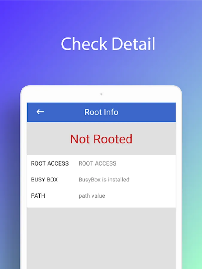 Root Checker The Analyst provide information about your phone like your phone CPU_AB1,Brand of your phone, Display size and manufacture, model number and also mobile manufacture, and many more which is provides for your information.