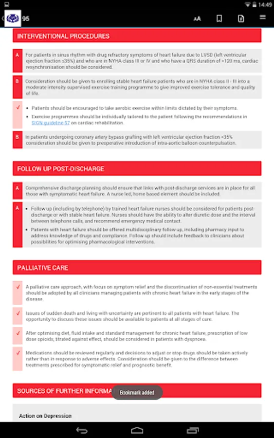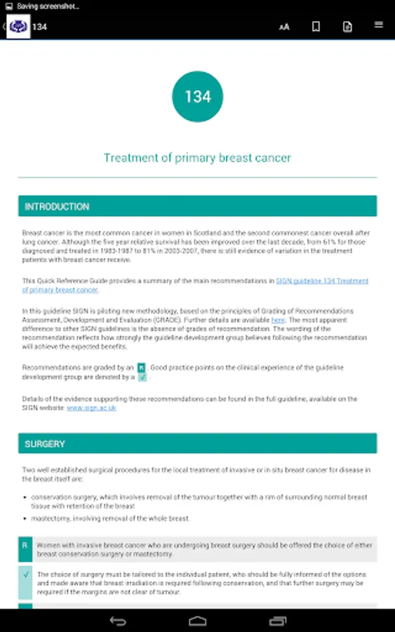 The QRG content is enhanced with material from the main guideline and online resources, linked to the SIGN website. The app features keyword search, bookmarking and access to the SIGN website. New QRGs will be available as an update as they are published, building into a complete library.