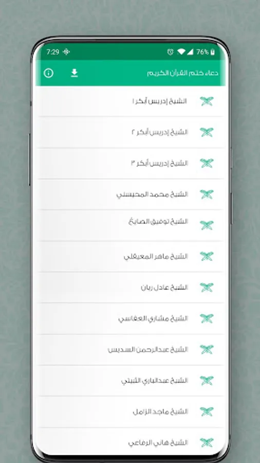 The application includes a valuable collection of supplications and supplications with the voice of the most famous readers in the Arab world, such as: