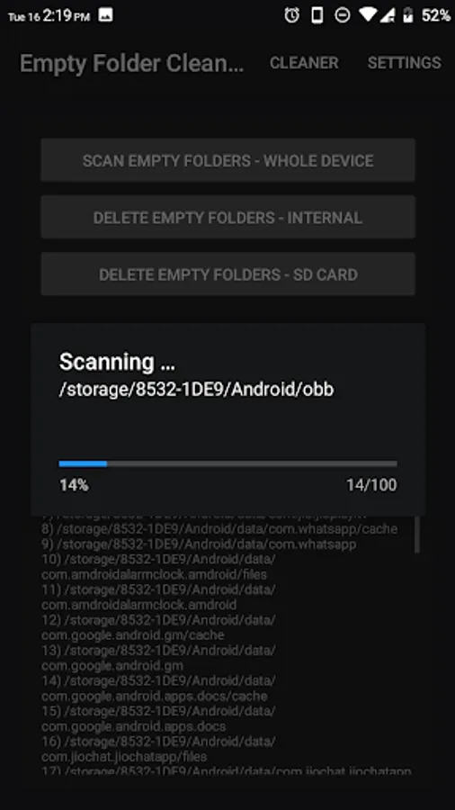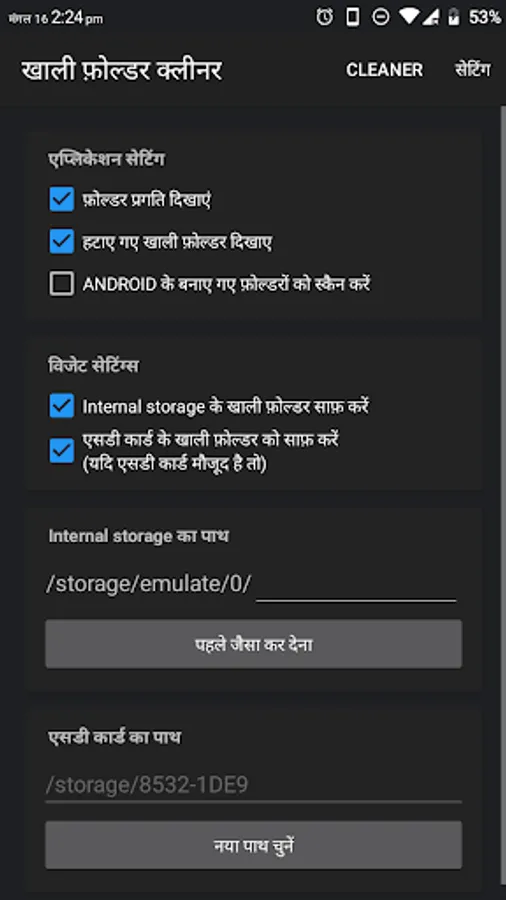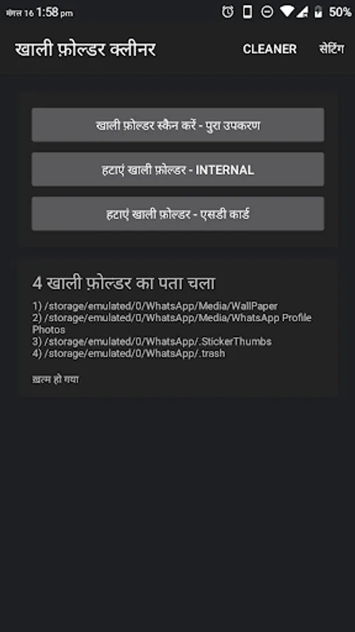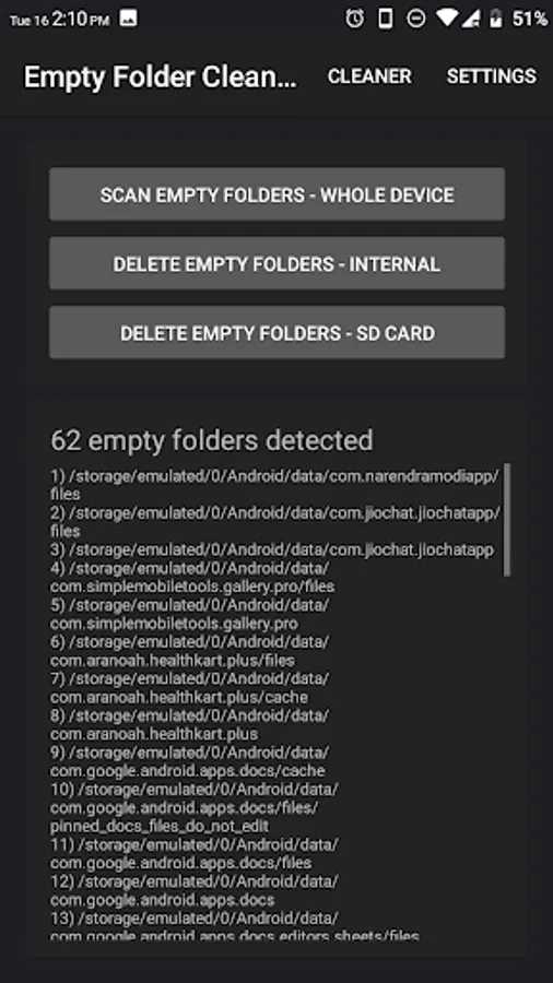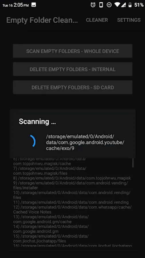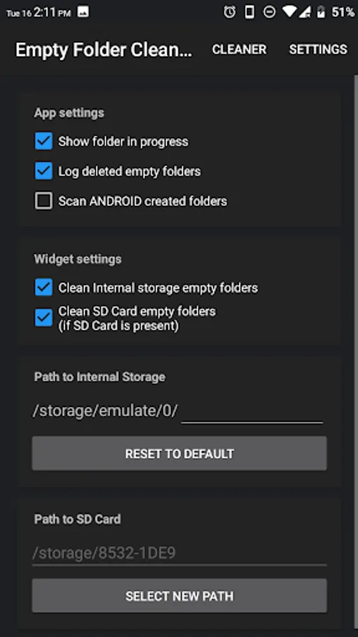 3. Scan ANDROID created folders - if selected, then the app will delete empty folders from the following directories as well /Android/data, /Android/obb, /LOST.DIR, /DCIM