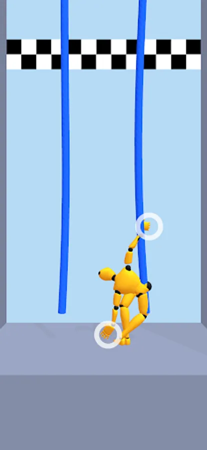In this game, you control a dummy to climb a rope to the goal. The dummy can grab the rope and climb up. The ropes come in various shapes and lengths, and the dummy must move its body according to the shape of the rope. The dummy wins when it reaches the goal.