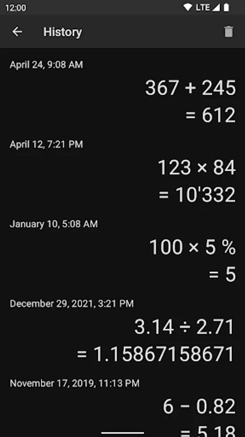 - Result history