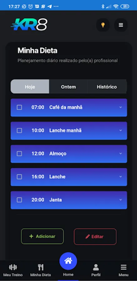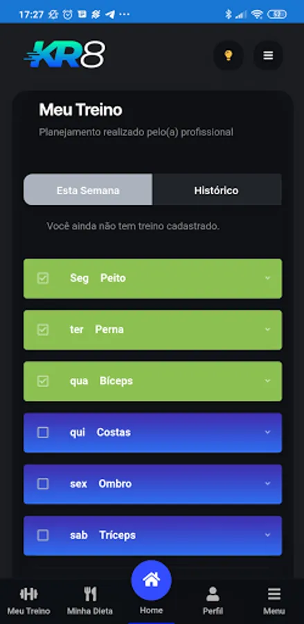 In KR8 you will find training programs and diets specific to your goal, in addition to professional monitoring. All within the same platform.