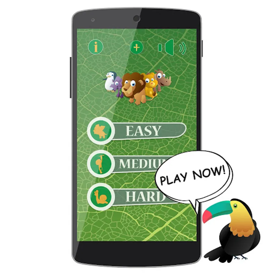 Animals memory game for kids has three different difficulties (easy, medium and hard).
