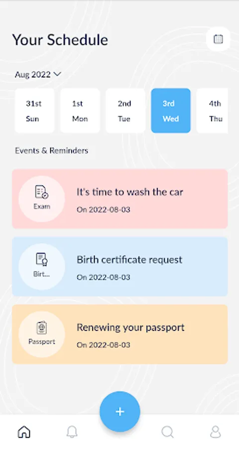 ذكِّرني Application will be used mainly as a reminder for the important events and dates for user and his family and pets as well, User also can add personal events and define when he will be reminded.