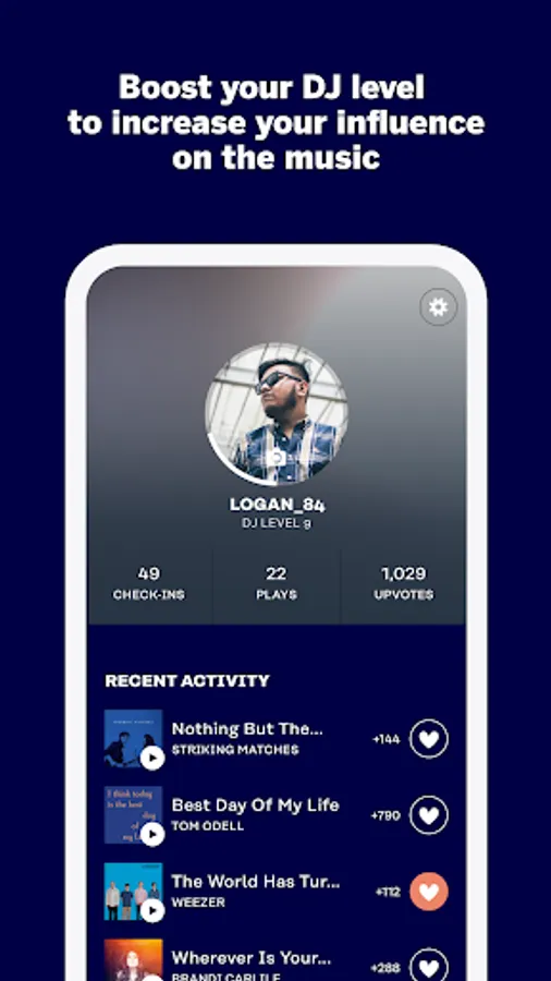 - Vote on upcoming music and influence what plays next. See what song is playing next and vote on upcoming songs that you want to hear.