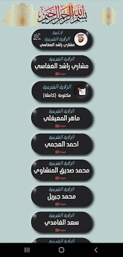 An application that contains the complete legal ruqyah for the reader, Meshary Al-Afasy, and for all readers (audio and written legal ruqyah)