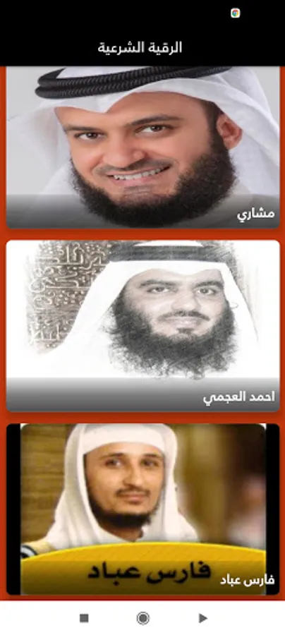Reciter Sheikh Ahmad Al-Ajmi, reciter Sheikh Faris Abbad, and reciter Mishary Rashid Al-Afasy