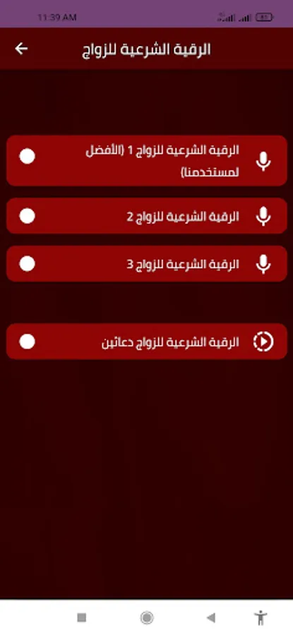 يمكنك التنقل بين أزرار تطبيق الرقية الشرعية للزواج بسهولة