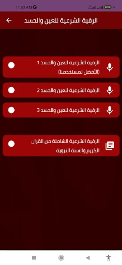 يمكنك التنقل بين أزرار تطبيق الرقية الشرعية للعين والحسد بسهولة
