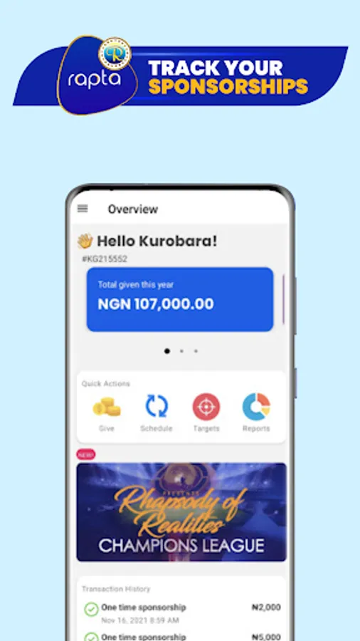 Take your personal sponsorship to the next level with the Rapta mobile app. Giving has never been this easy!