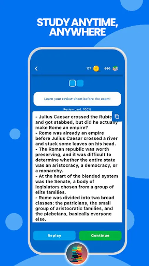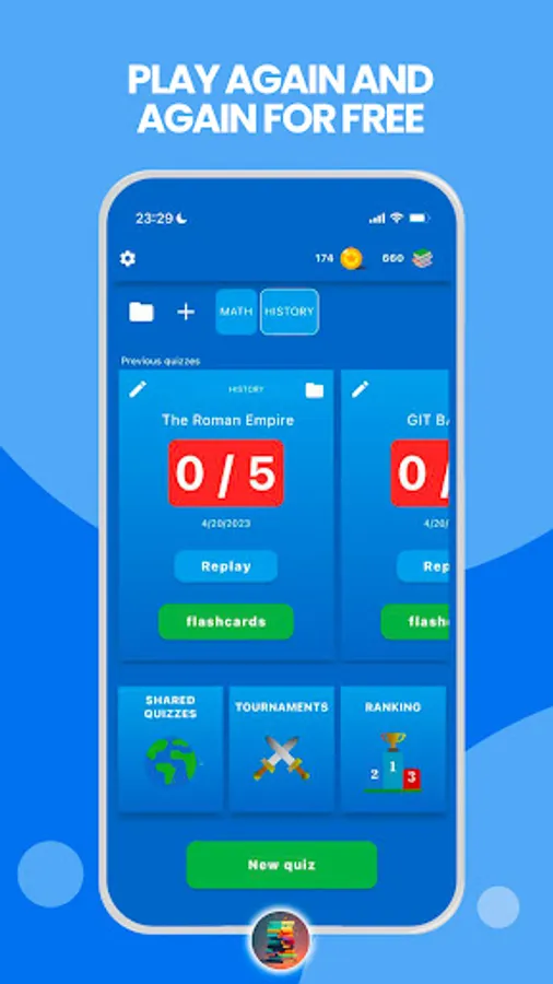 Our app uses AI to help you efficiently learn any subject. Test your knowledge through quizzes, reinforce your learning with flashcards, engage in friendly competition with other users, and strive for mastery.