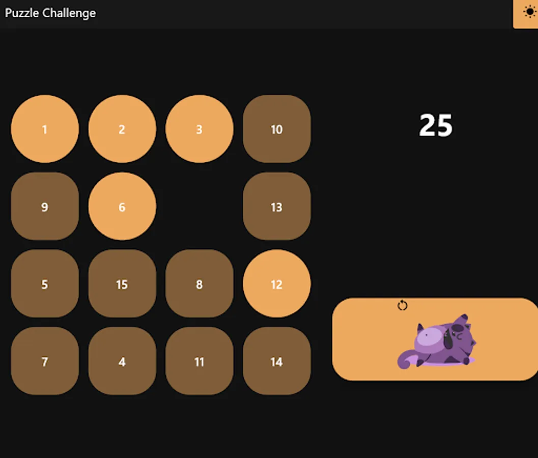 The 15 puzzle consists of 15 squares numbered from 1 to 15 that are placed in a 4×4 box leaving one position out of the 16 empty. Have fun!