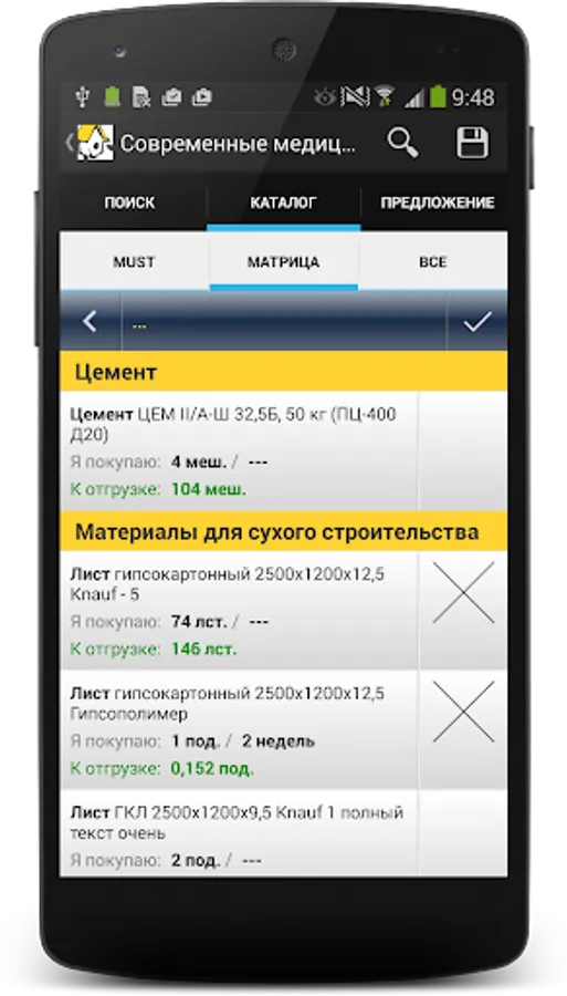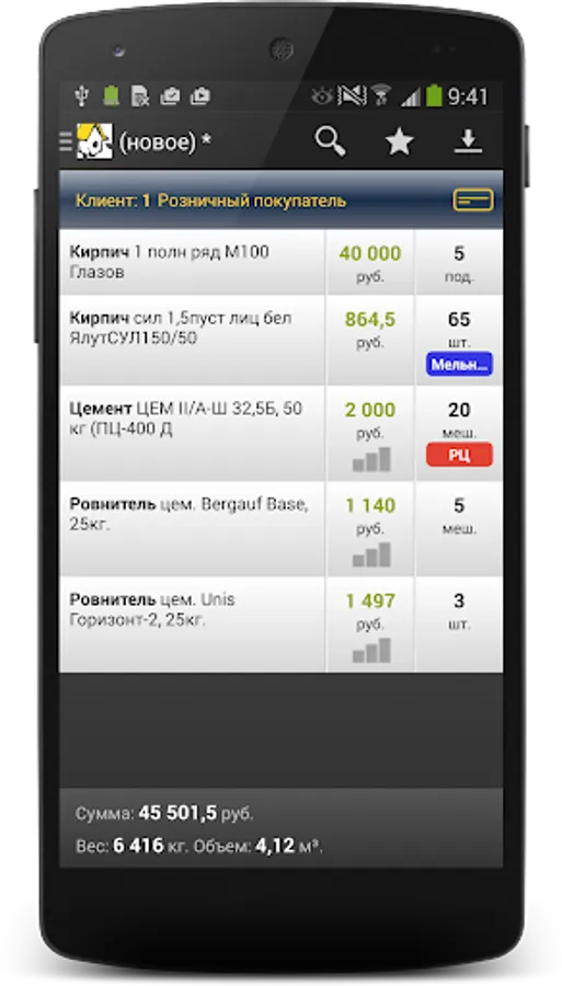 The app lets you create orders, prescribe products, watch description, prices and balances of goods in warehouses, to create movement from the warehouse to the sales floor and back.