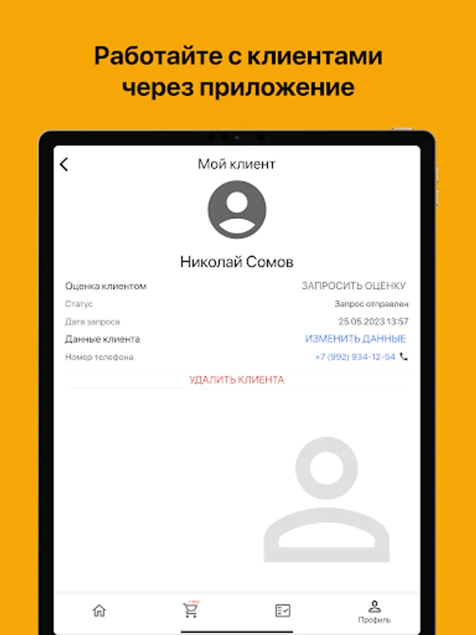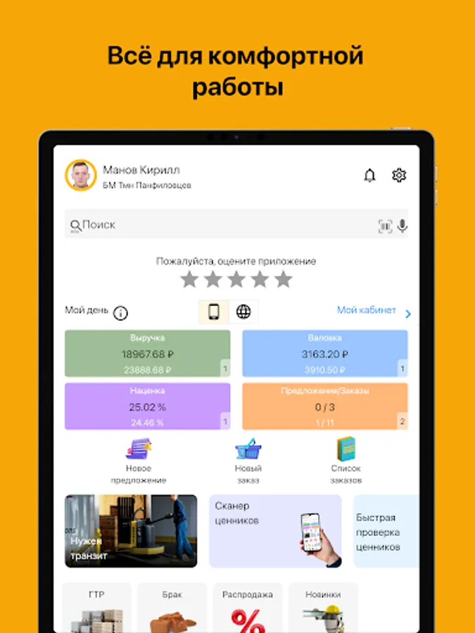 The application allows you to create orders, write out goods, view descriptions, prices and stock balances