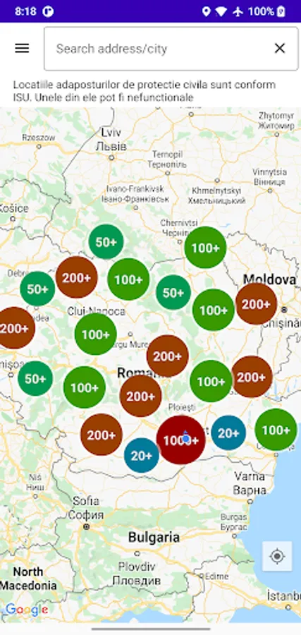 The locations of the civil protection shelters are taken over from official sources, the General Inspectorate for Emergency Situations (IGSU) by taking over the document available on the official website of IGSU,