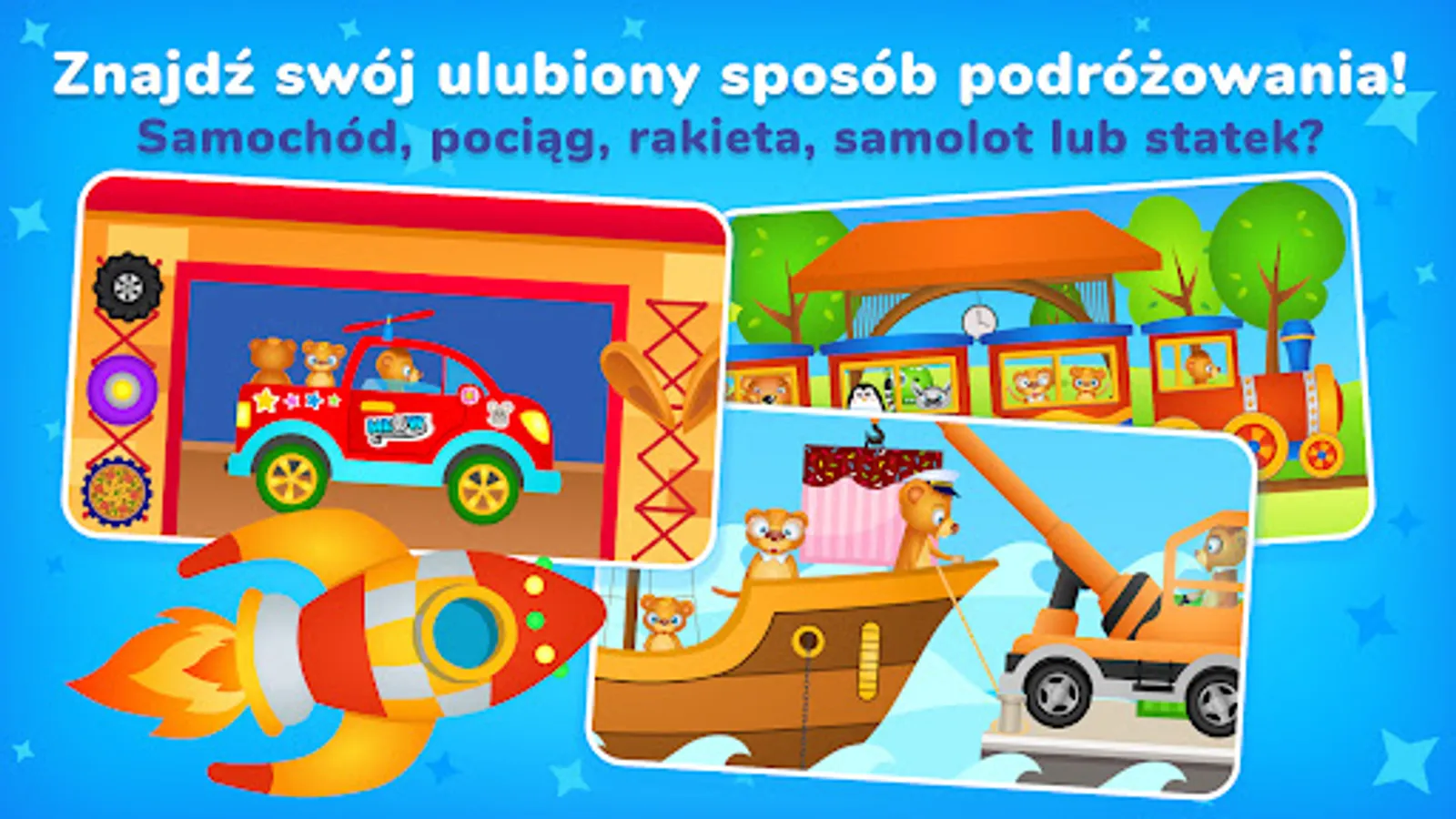 Baby Games for Kids Small Animals is divided into five sections, each with beautiful colors and offline animations, voiceover to support learning, intuitive navigation, music and amazing sound effects. Teach your child how to care for pets and what to feed them. Show your child the importance of insects, spiders and ants in nature. There will also be attractions for vehicle lovers, such as collecting rocket fuel, loading a ship or transporting passengers by train. Educational games for toddlers are just a sample of the many exciting adventures that await your children.