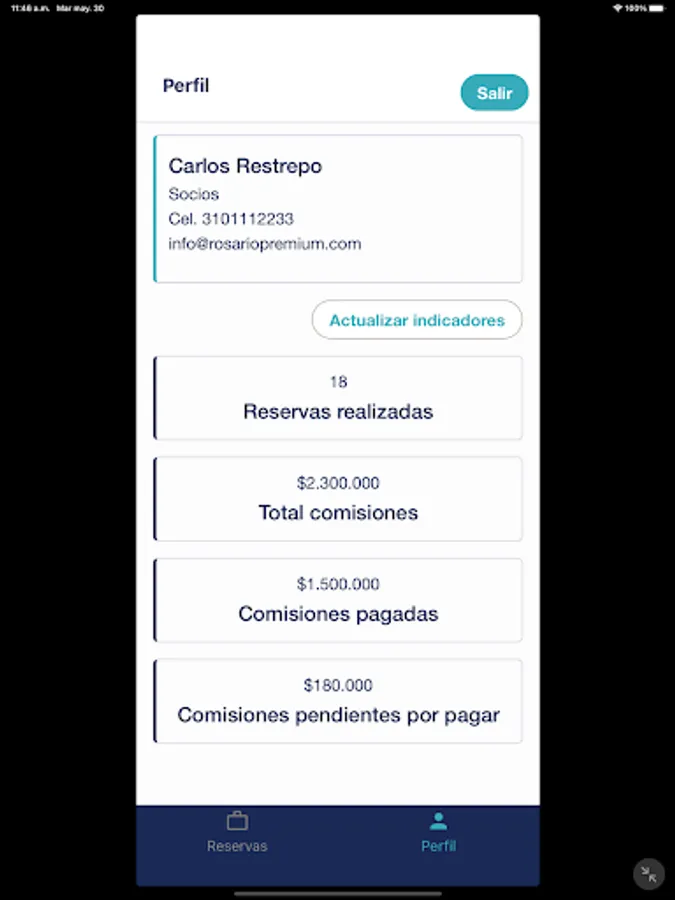 Application to make reservations to the VIP plan of the Rosario Islands in Cartagena.