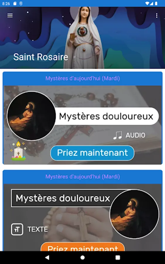 Experience the convenience of the Holy Rosary prayer app. Daily prayers are automatically selected for your convenience. Check out these amazing features: