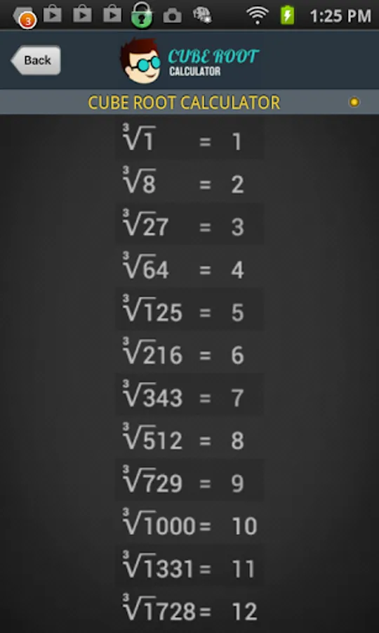 PERFECT CUBES are the cubes of whole numbers. This APP will advise you as it calculates if a cube root is “perfect”