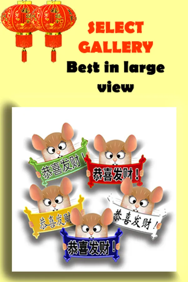 Chinese new year card is a new collection of spring festival greeting cards. It is special designed for this coming rat year 2020 to say " Happy Chinese new year" to oversea friends and you loved one. Latest Chinese new year card full of red & gold, Chinese people believe red & gold bring happiness, lucky and wealth. It is also designed for those who don't understand Chinese and need a greeting cards for this coming rat year. It is a collection of Chinese new year card in Chinese and English version.