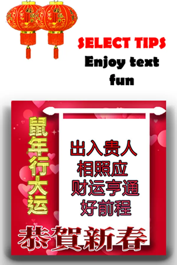 5). A page of tips to create your own unique Chinese new year card using app's plain card.