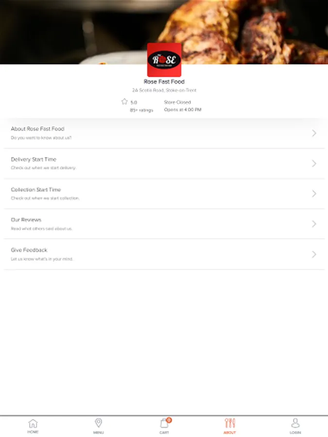 We're also available for ordering on https://rosefastfood.co.uk/storemenu and also on https://kuick.com/order/rose-fast-food