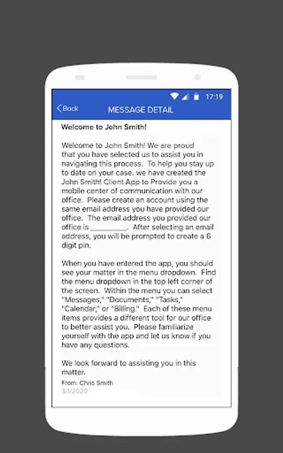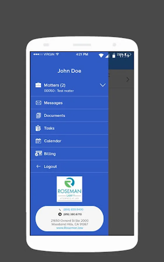 The Roseman Law is for clients of the law firm Roseman Law The App is intended to assist clients in communicating with their attorney and staying informed regarding their case. Clients may utilize a message feature to send and receive messages with their attorney, as well as upload and view documents, receive assigned tasks from their attorney, view their case calendar, and stay up to date on their bill. The Roseman Law is intended to supplement traditional means of communication and ensure the clients of Roseman Law are thoroughly informed.