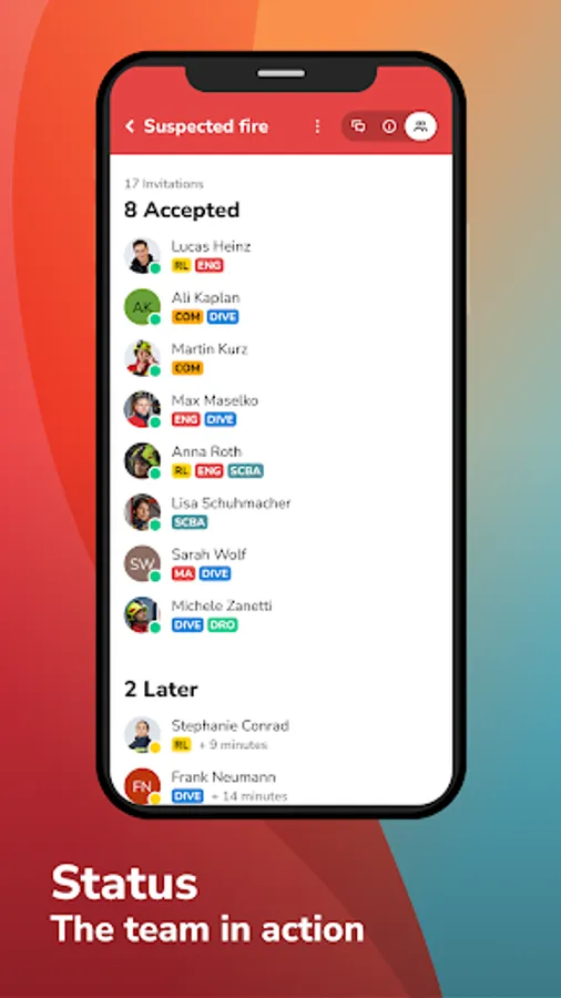 • ALARM FEEDBACK: Here you can see who is deployed when and what qualifications the individual team members have.